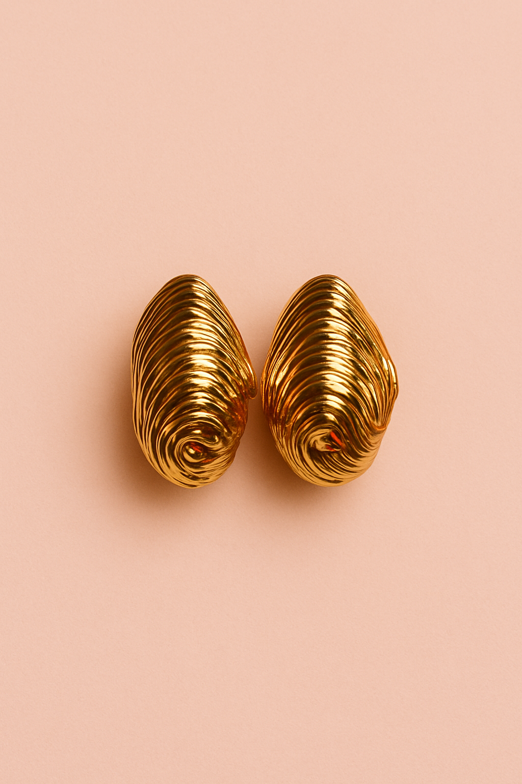 Bold and sculptural, the Golden Ripple Earrings feature fluid wire-like contours that exude elegance and confidence—perfect for statement-making moments.